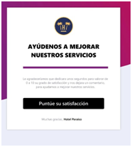 Un par de días después del check-in, el usuario recibe una invitación por parte del hotel para evaluar su estancia. Al puntuar de 0 a 10 la experiencia y dejar un comentario, podemos conocer su percepción de las vacaciones.