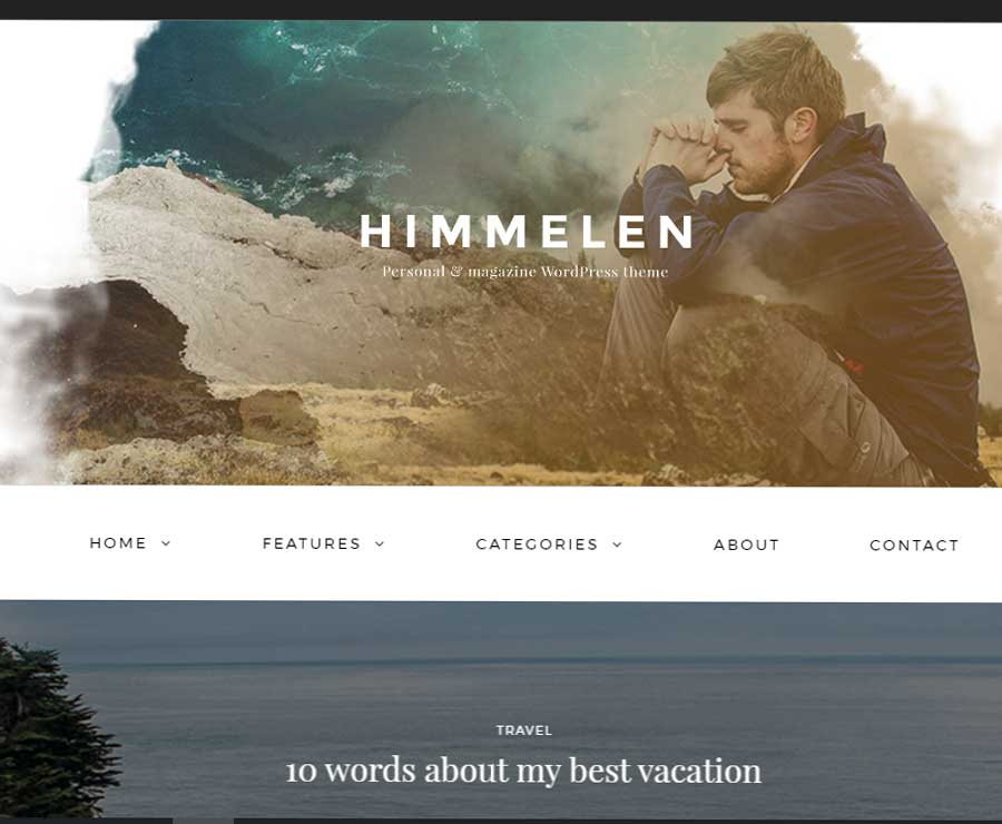 Himmelen es un blog temáticos elegante y limpio con la que podrás contar tus historias sobre viajes, inspiraciones, comida, modas, noticias, fotos, bodas y momentos cotidianos de todo el mundo.