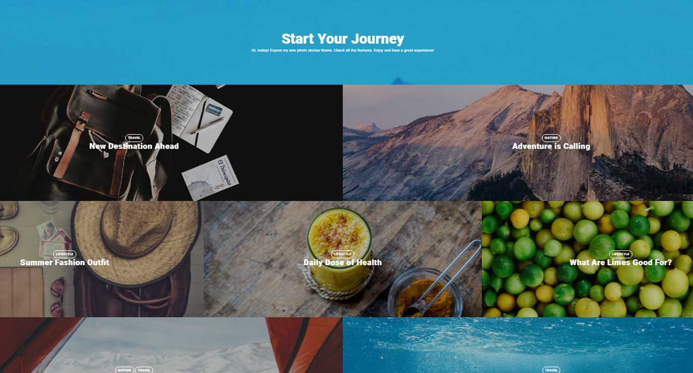 Mira es un tema elegante para los escritores, bloggers, diseñadores, fotógrafos, viajeros. Es limpio y sencillo, fácil de usar.